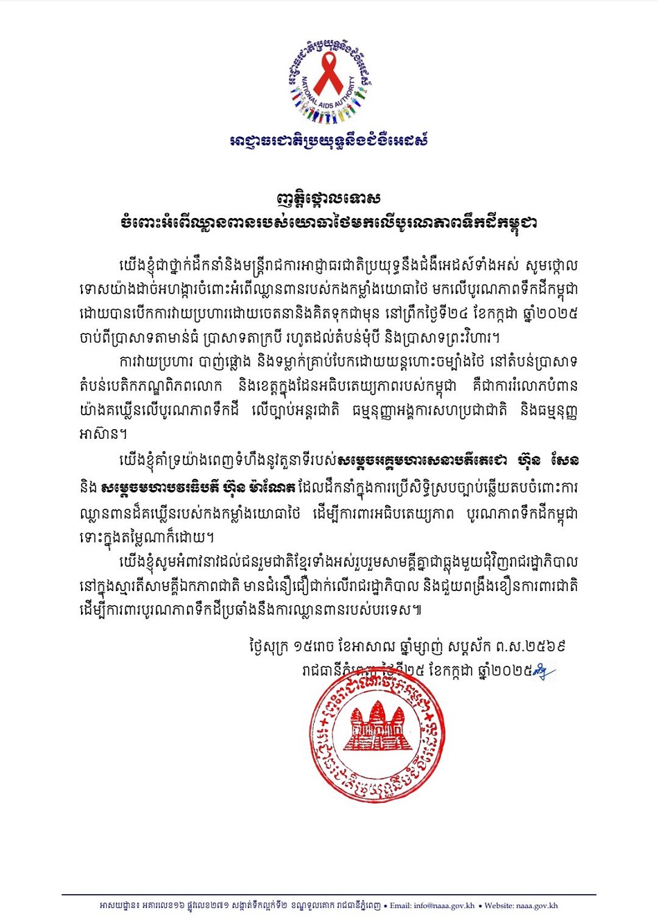 ញត្តិថ្កោលទោស ចំពោះ​អំពើឈ្លានពាន​របស់​យោធាថៃ​មកលើបូរណភាព​ទឹកដី​កម្ពុជា