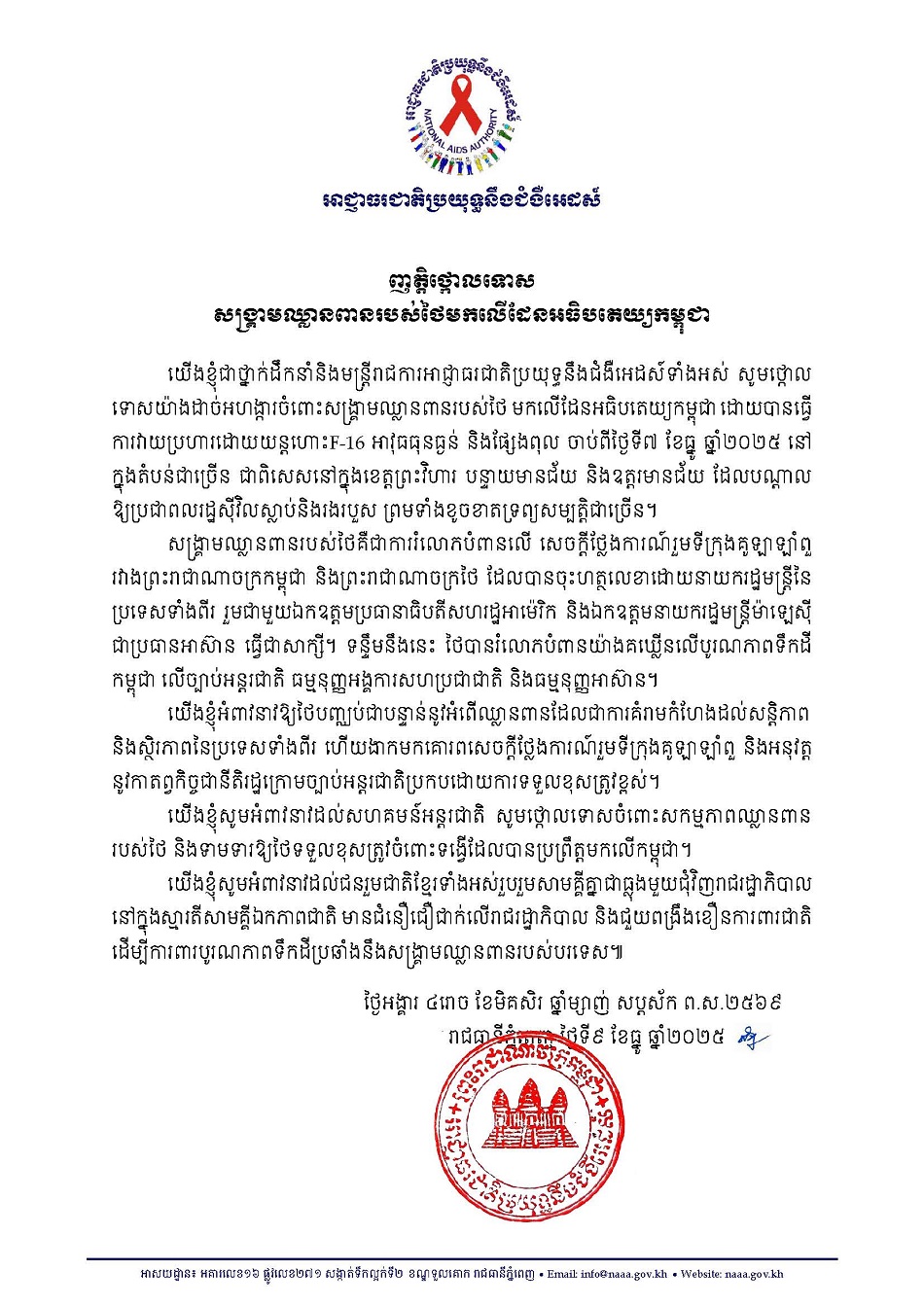 Posted inUncategorized ញត្តិថ្កោលទោស សង្គ្រាមឈ្លានពានរបស់ថៃមកលើដែនអធិបតេយ្យកម្ពុជា Posted by Admin-Kanel December 9, 2025 Admin-Kanel View All Posts Post navigation Previous Post លិខិតអបអរសាទរ ព្រះករុណាព្រះបាទសម្តេចព្រះបរមនាថ នរោត្តម សីហមុនី ព្រះមហាក្សត្រនៃព្រះរាជាណាចក្រកម្ពុជា បានចូលជាសមាជិកសមាគត (membre associé) នៃបណ្ឌិត្យសភាវិទ្យាសាស្ត្រ ឯនាយសមុទ្រ នៅទីក្រុងប៉ារីស ប្រទេសបារាំង